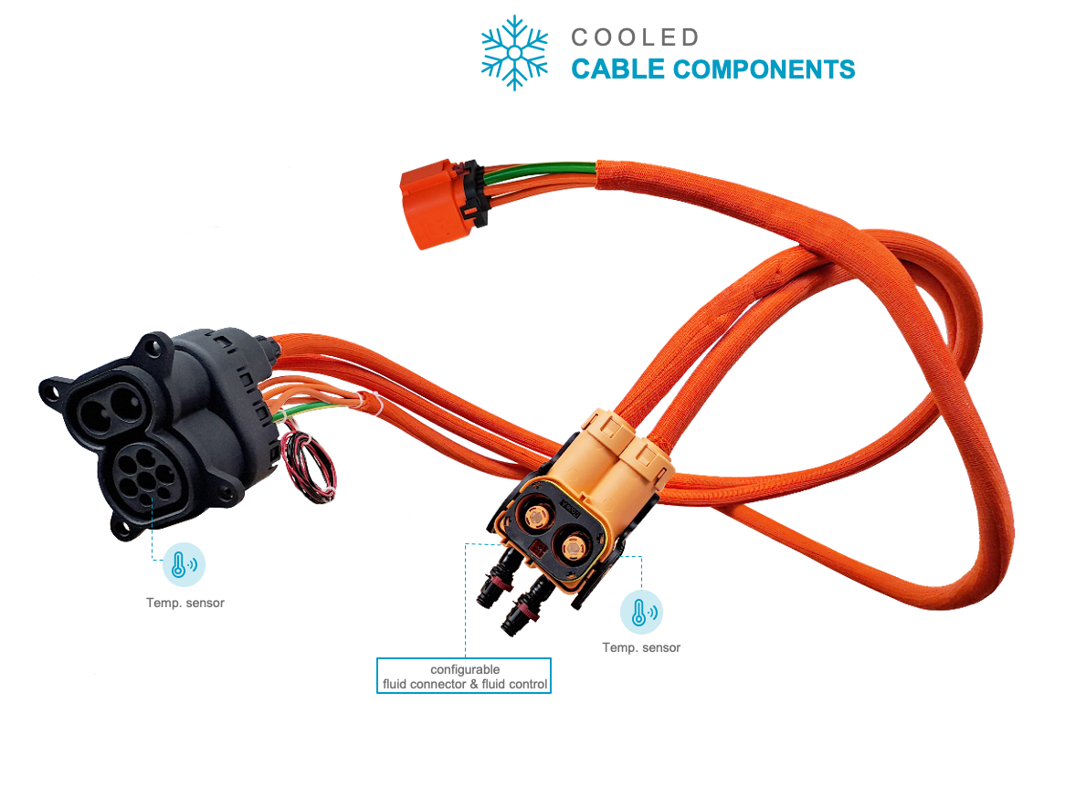 Während Inverter, Elektromotoren und HV-Batterien in der Regel flüssigkeitsgekühlt sind, gilt dies für elektrische Verbindungsleitungen und fahrzeugseitige Ladeleitungen meist nicht. Um Überhitzung zu vermeiden, müssen die Ladeströme daher begrenzt werden – was die erreichbare Ladeleistung direkt einschränkt.